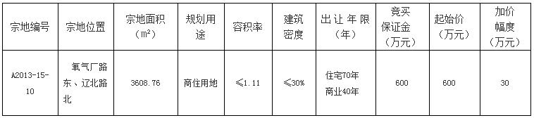 三、该地块为棚户区改造项目,需安置回迁住宅建筑面积2098.78㎡。为保证回迁面积、户数在安置时能满足回迁的实际需要,具体建设要求不低于白棚改指字[2010]1号文件规定的标准(详见挂牌出让文件)。