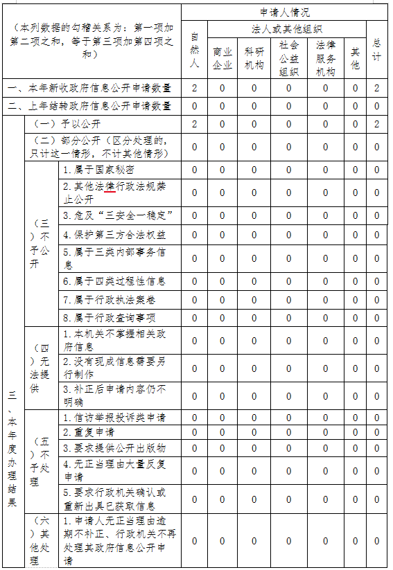 三、收到和处理政府信息公开申请情况